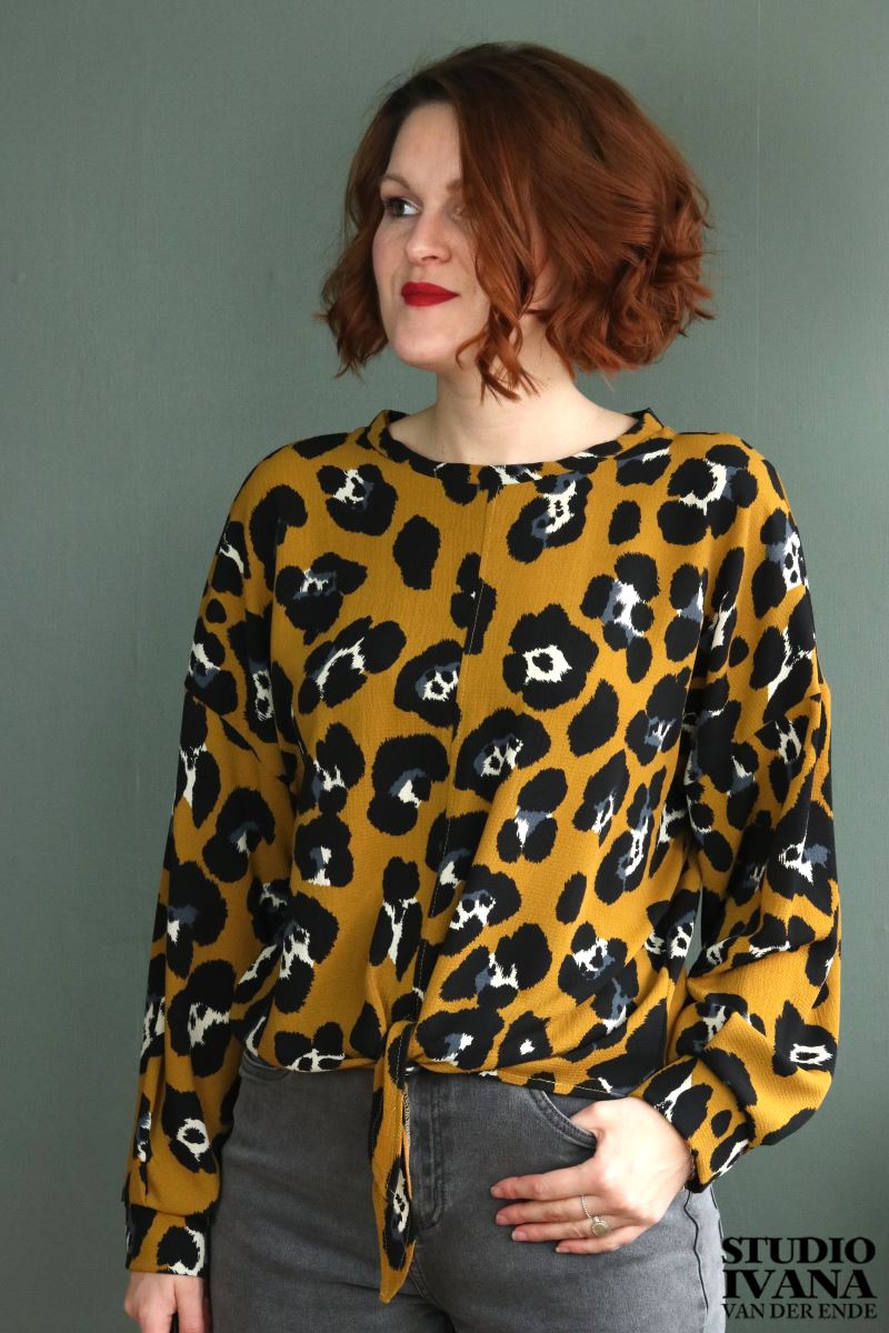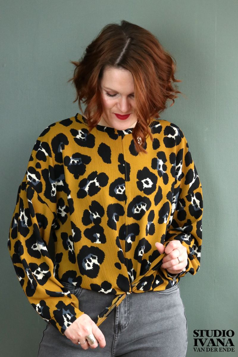 Je kunt de zoom zelf strikken. Wat strakker, zodat de blouse wat meer aansluit, of juist een wat lossere strik.