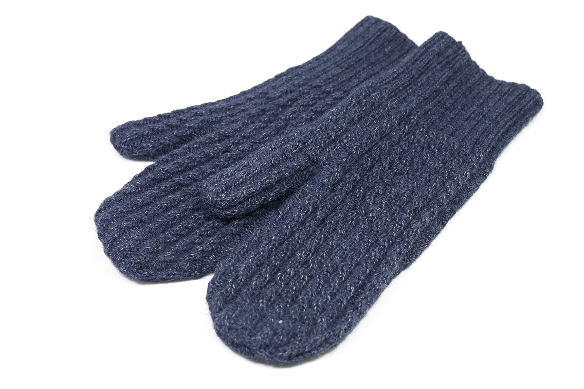 De donkerblauw gemêleerde wanten hebben een minimalistische vormgeving en zijn al geschikt voor de wat frissere dagen.