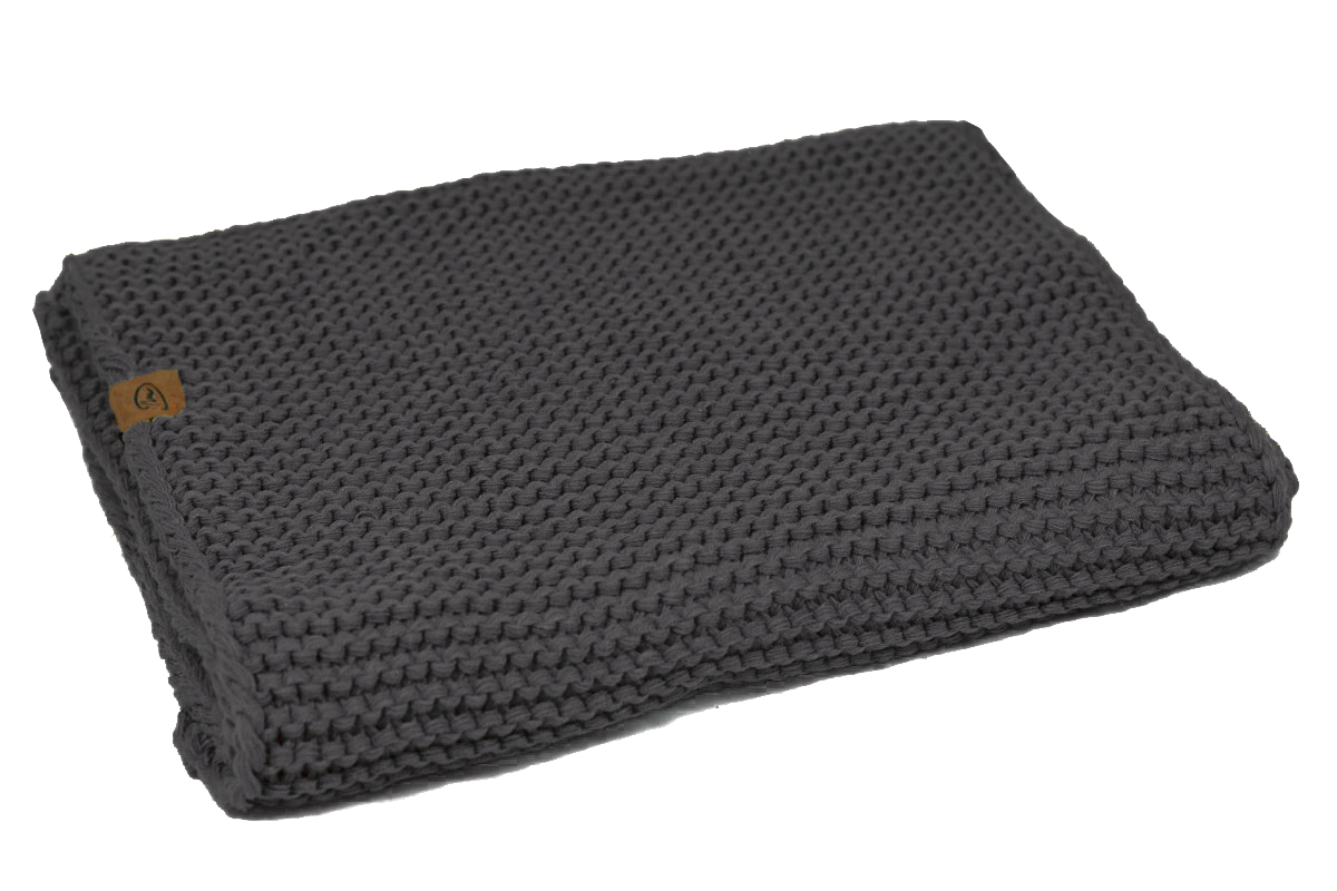 Een luxe gebreide sjaal in de kleur donkergrijs, van een stoer grove breisel.