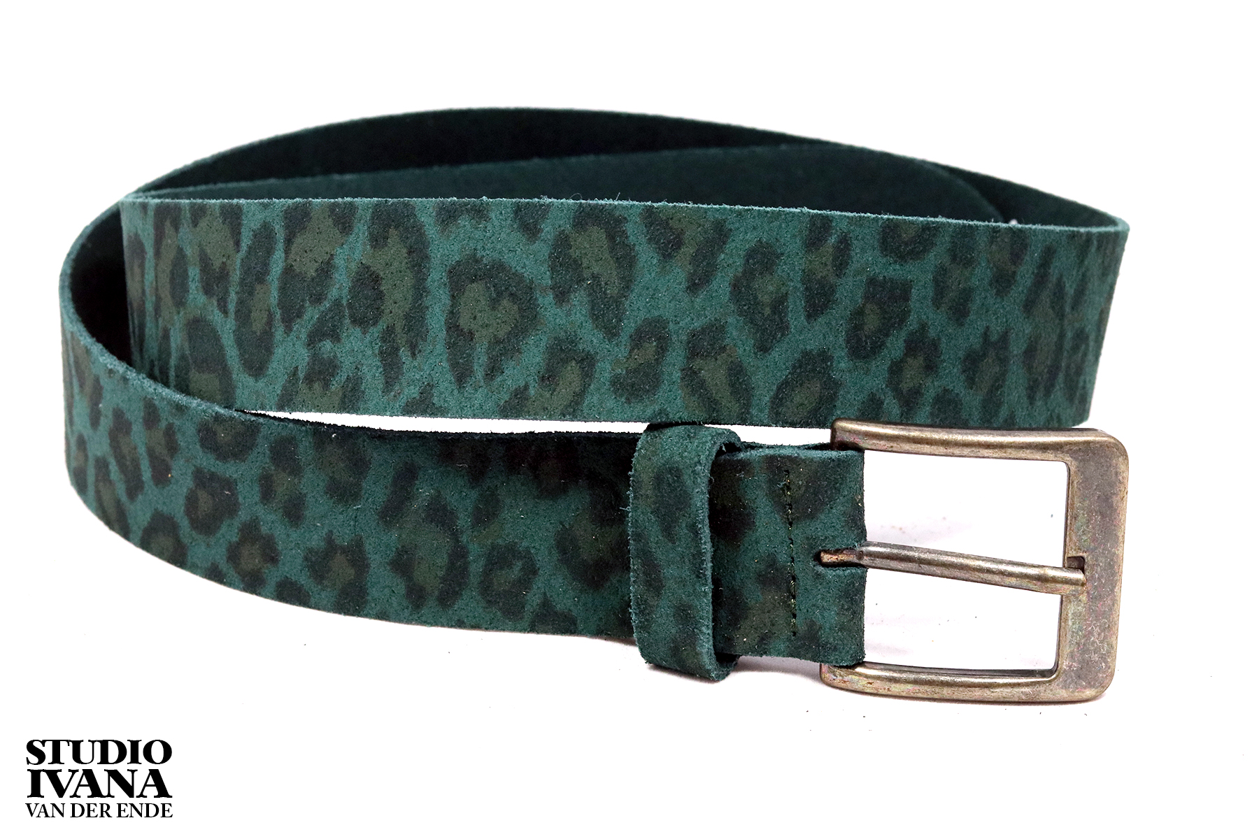 De lederen riem is verkrijgbaar in verschillende afmetingen en in 3 verschillende uitvoeringen, namelijk animalprint legergroen, animalprint petrol en zebra grijs/zwart.