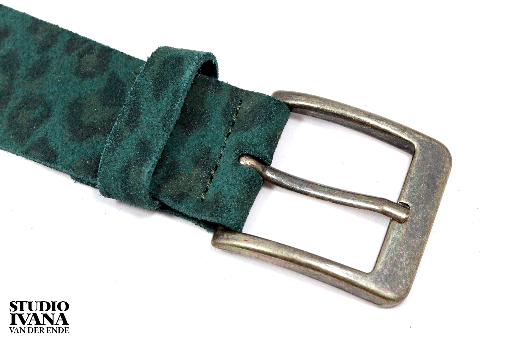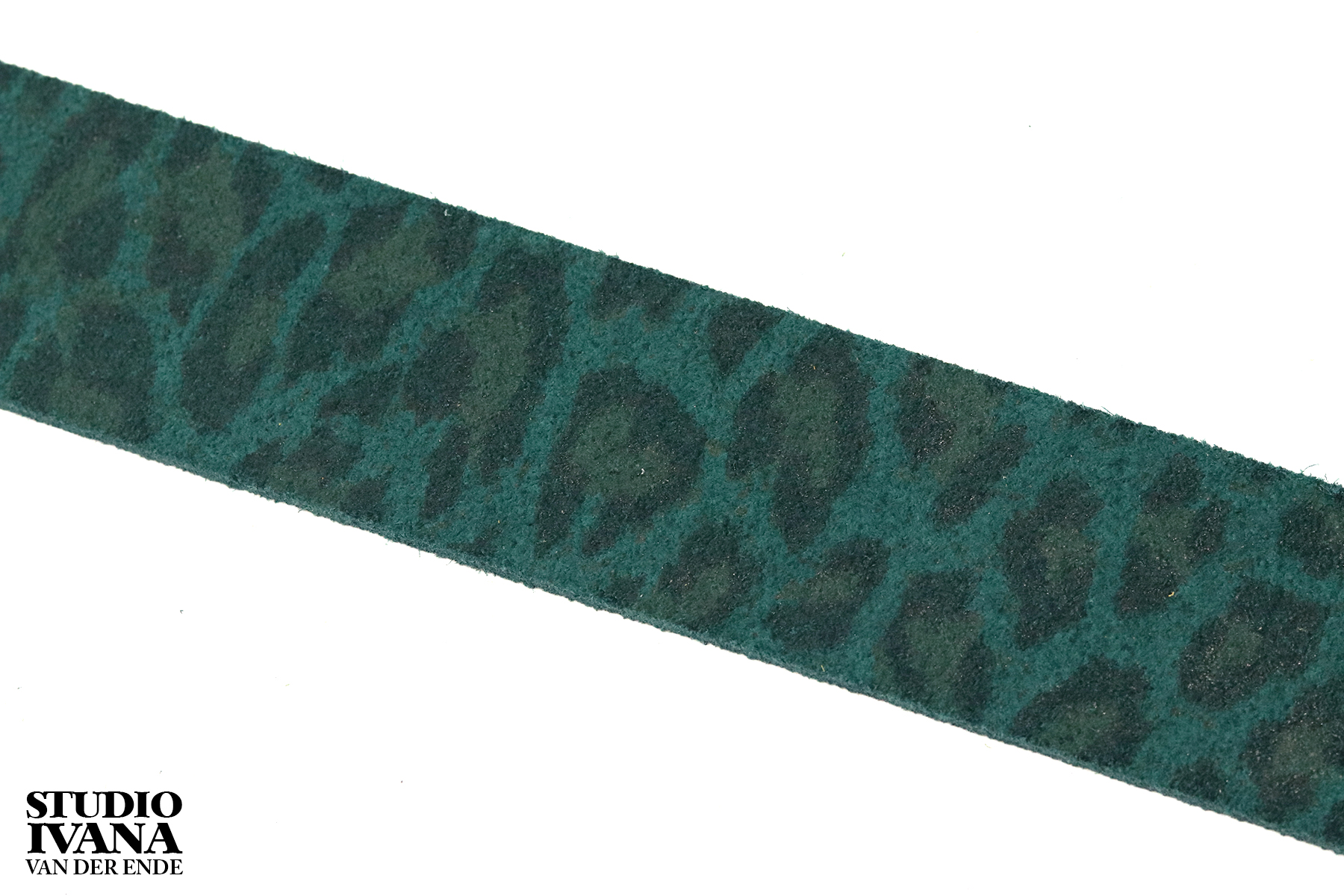 Oeh, deze riem is leuk! Lederen riem animalprint in de kleur petrol.