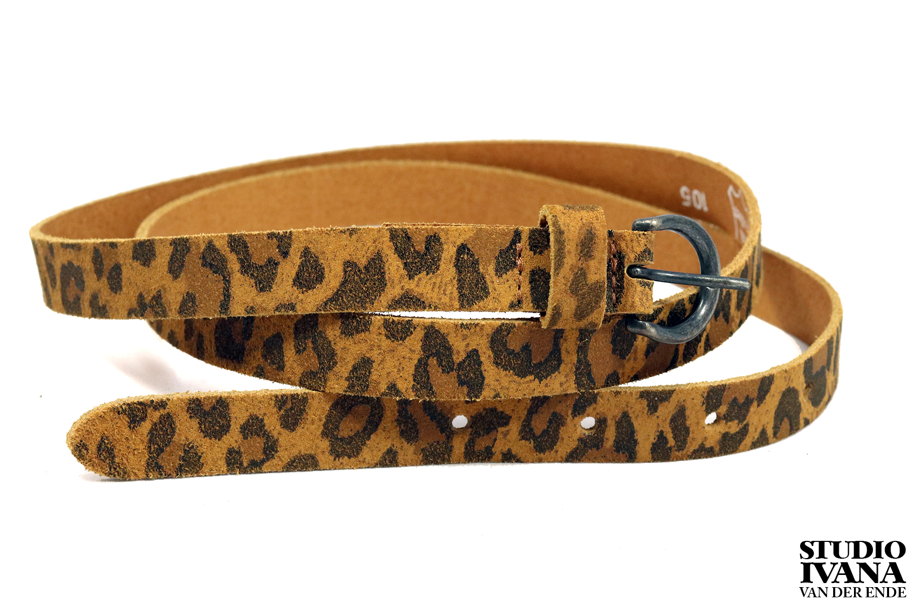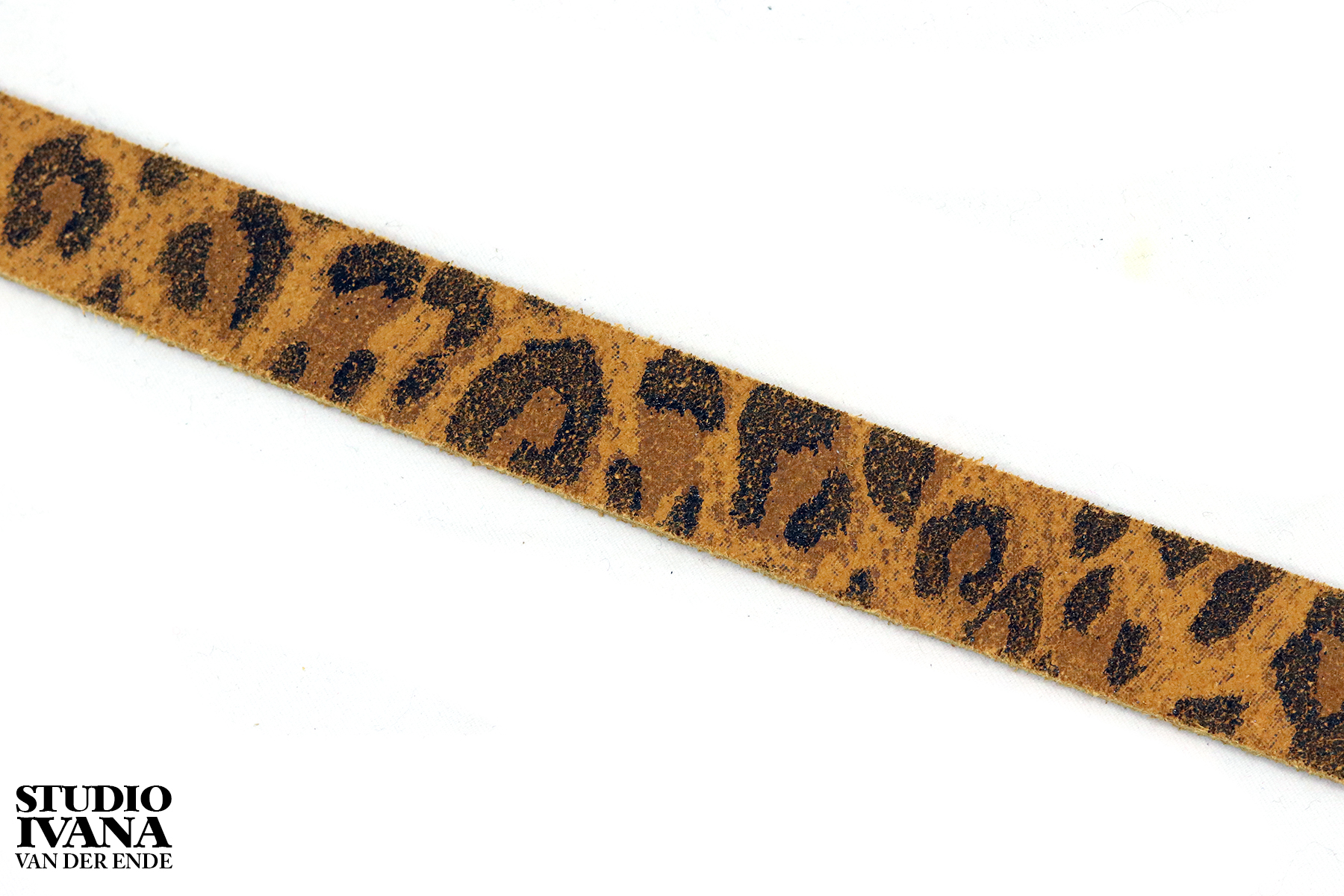 Het lederen riempje met animalprint is geschikt voor diverse maten, omdat het soepele leder gemakkelijk op maat te knippen is.