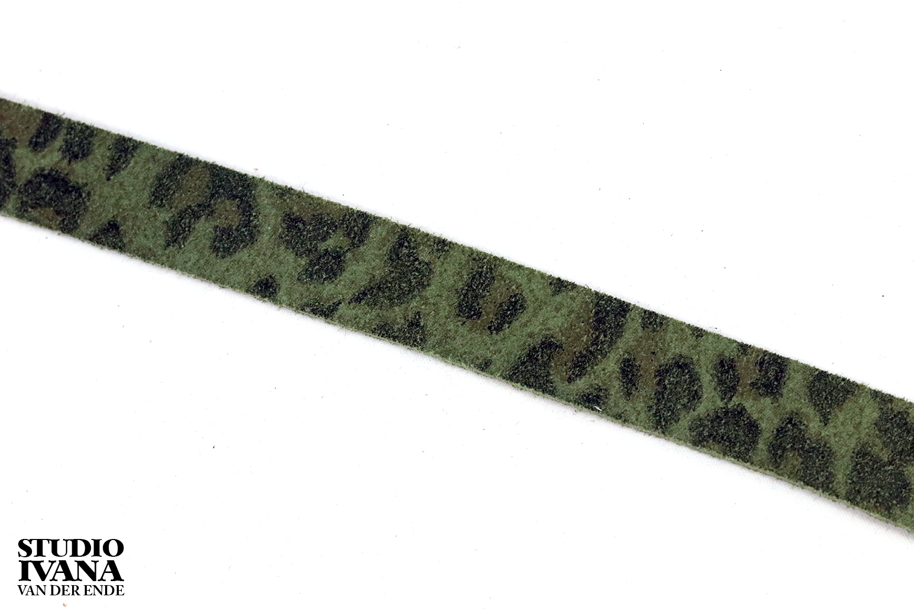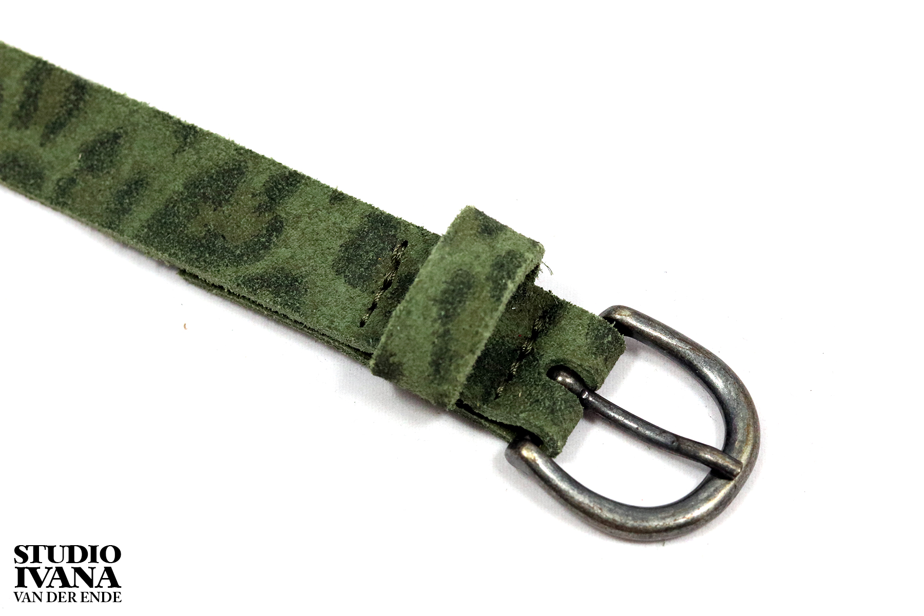 Op zoek naar een leuk extraatje voor bij je outfit? Wat dacht je van dit lederen riempje met animalprint in het legergroen?