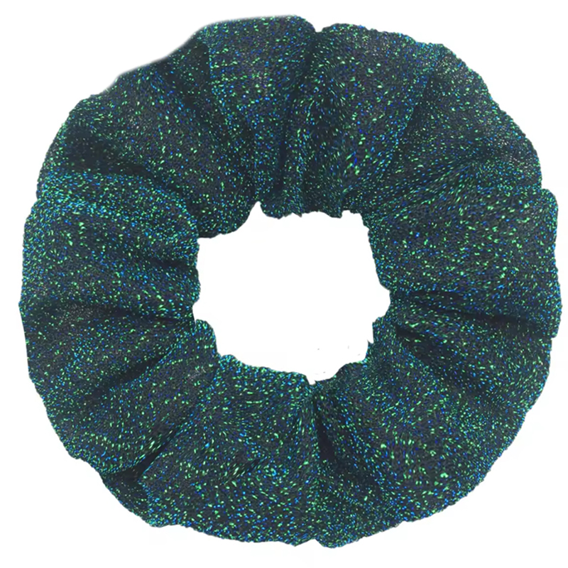 Glitter scrunchie multicolor, in de kleuren blauw en groen. Met deze feestelijke haarwokkel ben jij party-proof! De scruchies zijn gemaakt van textiel met daarin een lurex draad. De glitters laten dus niet los.