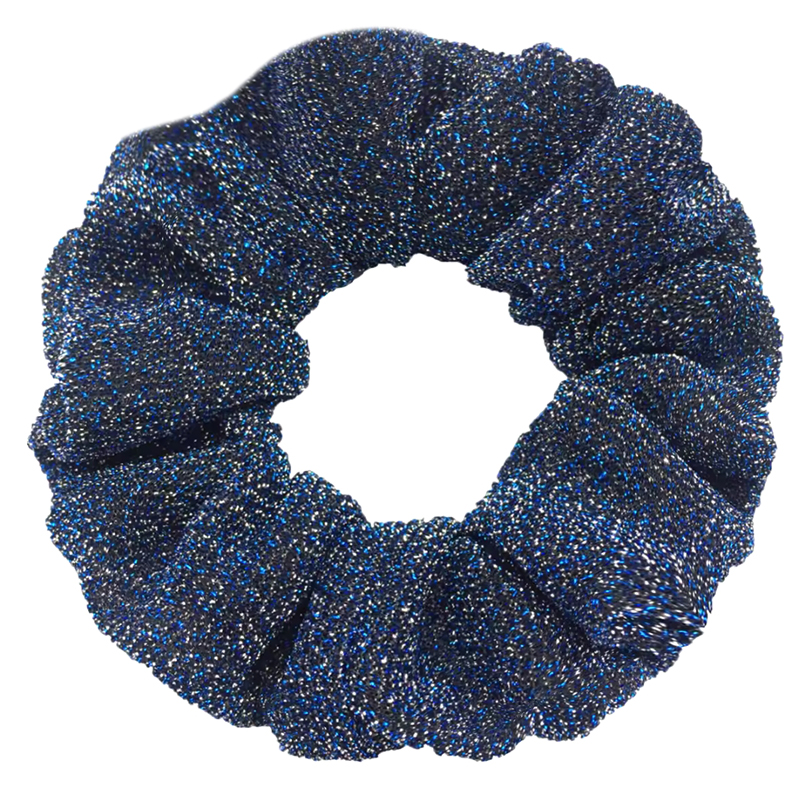 Glitter scrunchie multicolor, in de kleuren blauw en zilver. Met deze feestelijke haarwokkel ben jij party-proof! De scruchies zijn gemaakt van textiel met daarin een lurex draad. De glitters laten dus niet los.