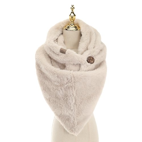 Naturel faux fur omslagdoek en sjaal is een accessoire, gecreëerd om elke outfit direct karakter te geven. Deze driehoekige sjaal is gemaakt met 2 stoffen: de ene zijde is heerlijk zacht en aaibaar, terwijl de andere kant een soepele, matte finish heeft.
