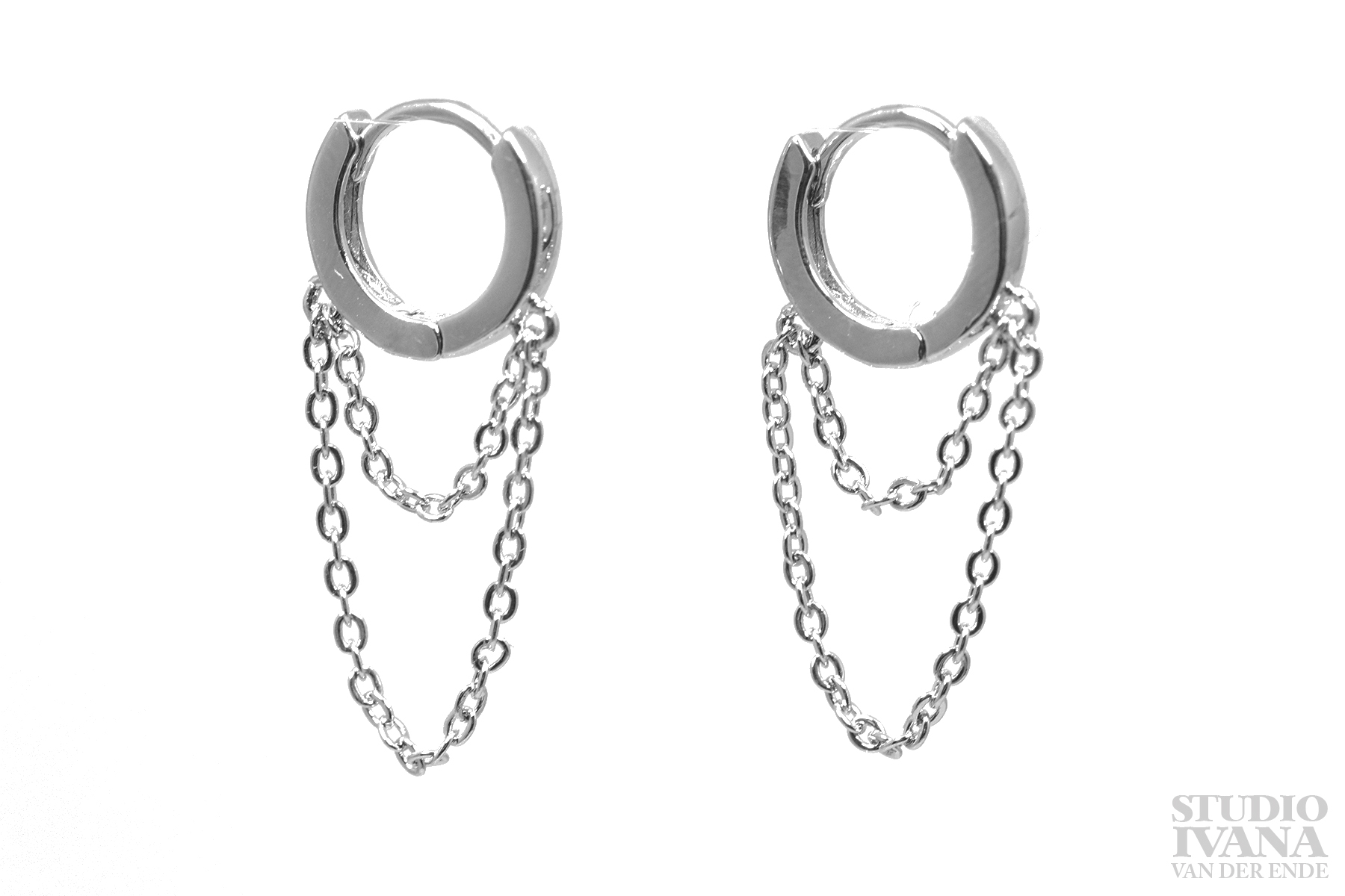 Deze oorringen zijn stoer! Aan de ring is een ketting bevestigd.