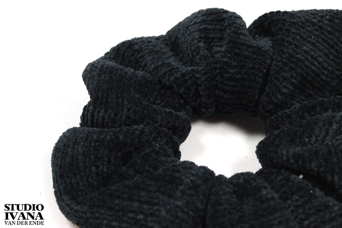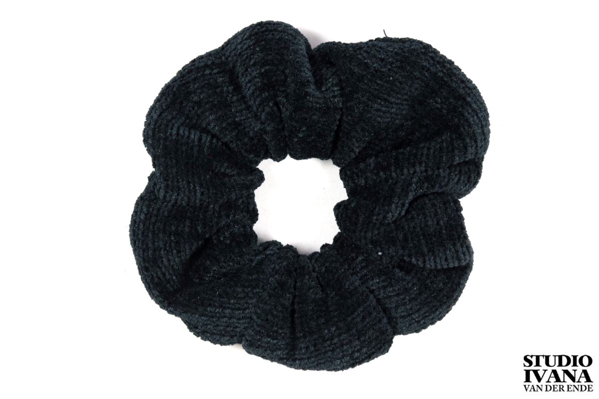 Scrunchie zwart van zacht chenille.
