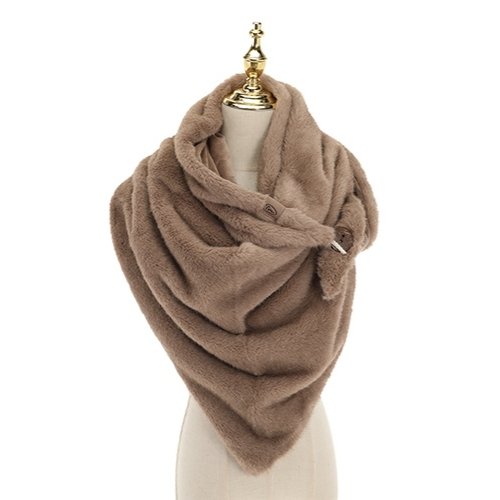 Taupe faux fur omslagdoek en sjaal is een accessoire, gecreëerd om elke outfit direct karakter te geven. Deze driehoekige sjaal is gemaakt met 2 stoffen: de ene zijde is heerlijk zacht en aaibaar, terwijl de andere kant een soepele, matte finish heeft.
