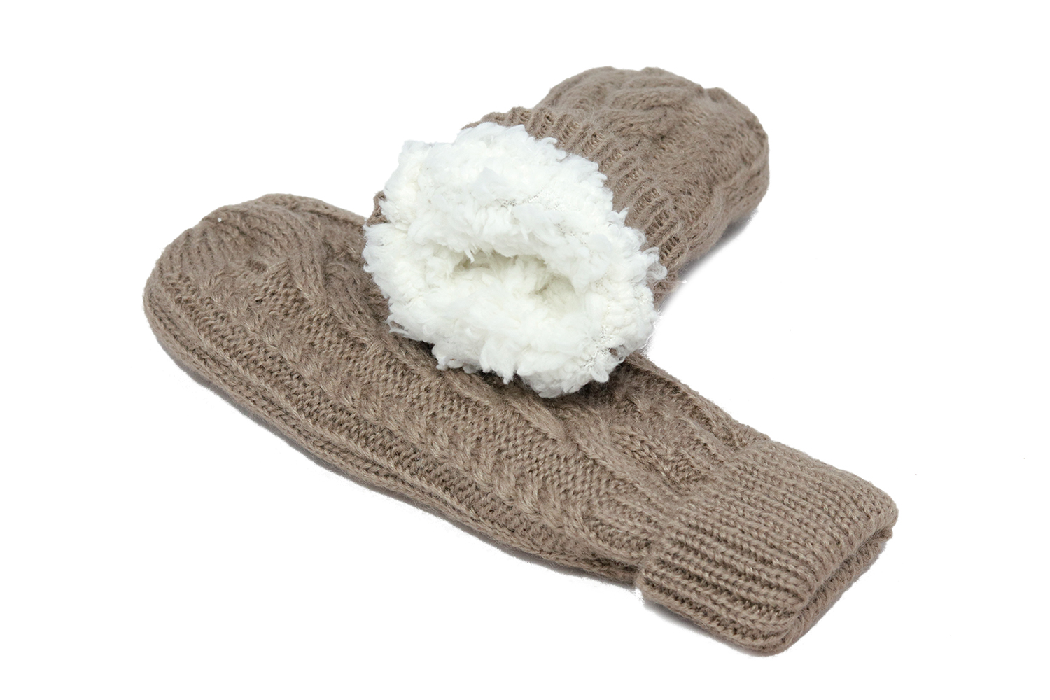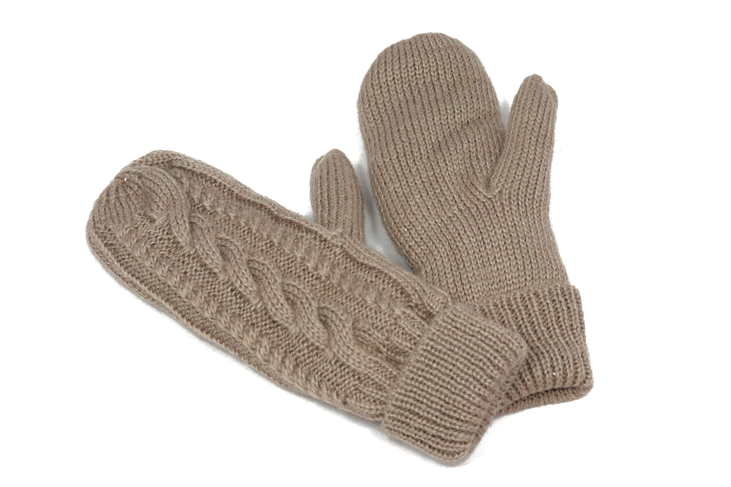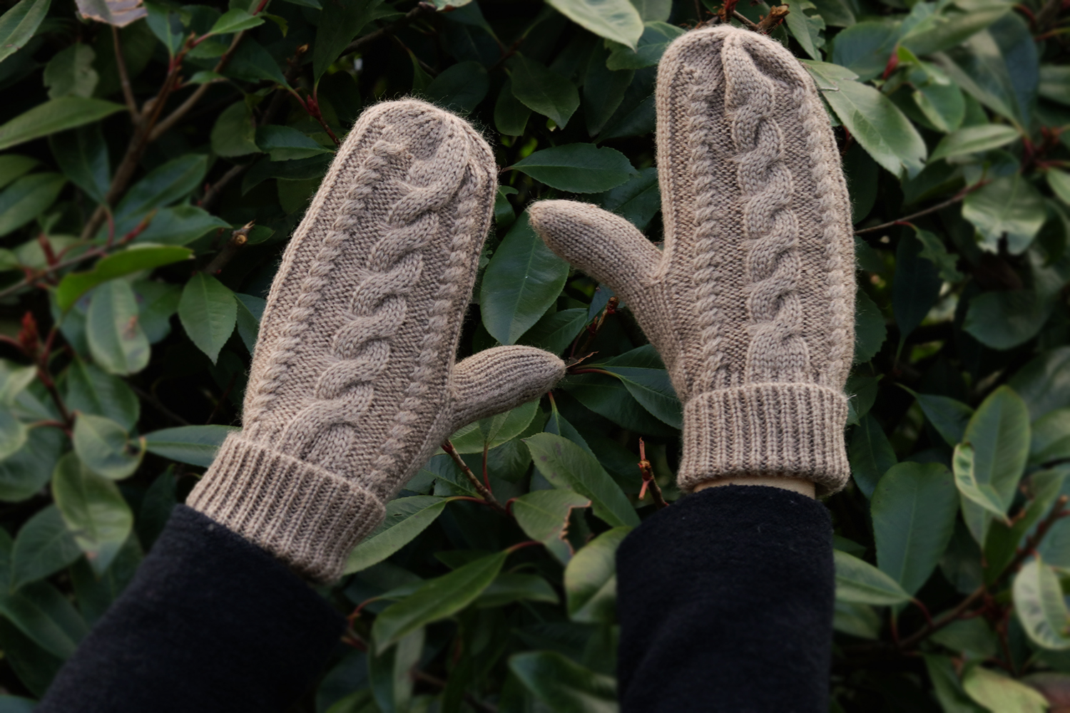 Taupe gebreide wanten met kabel zijn heerlijk warm!