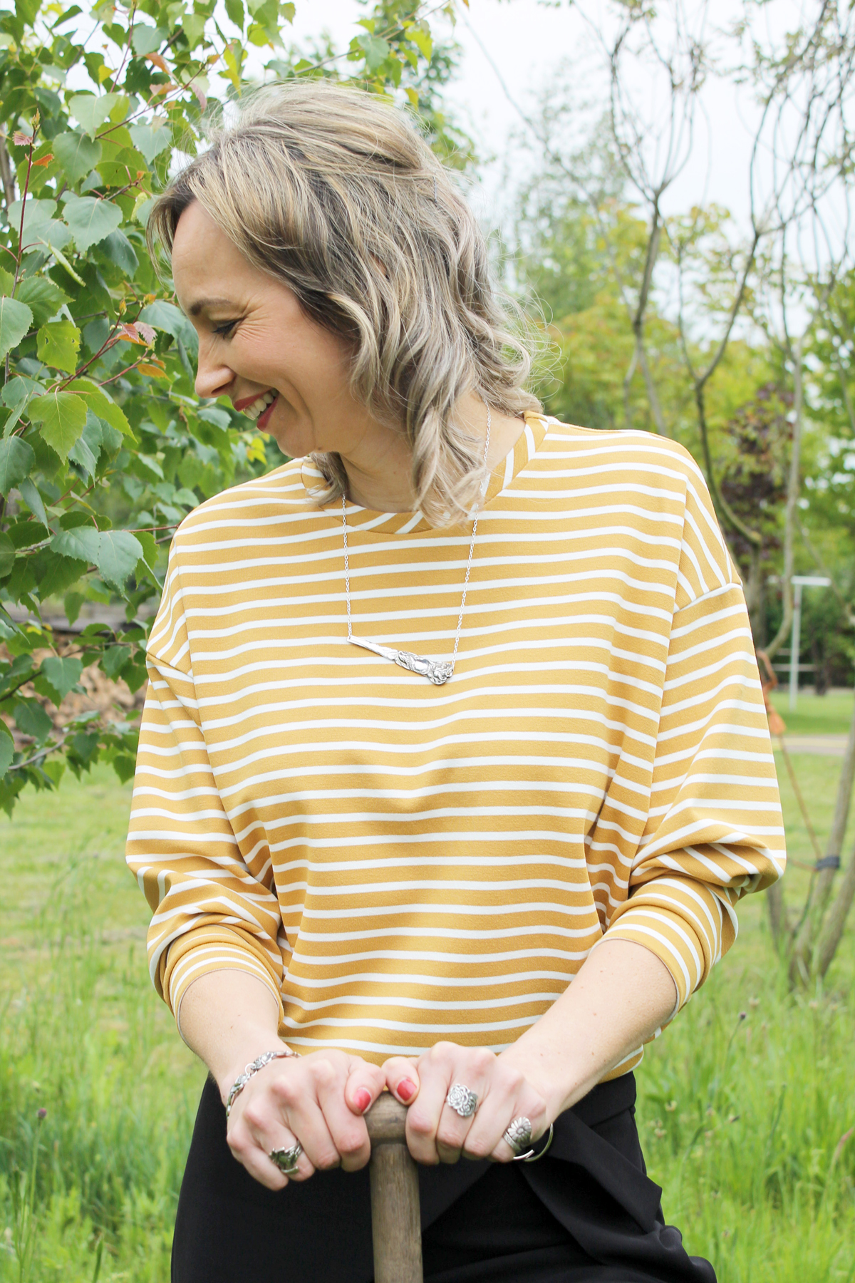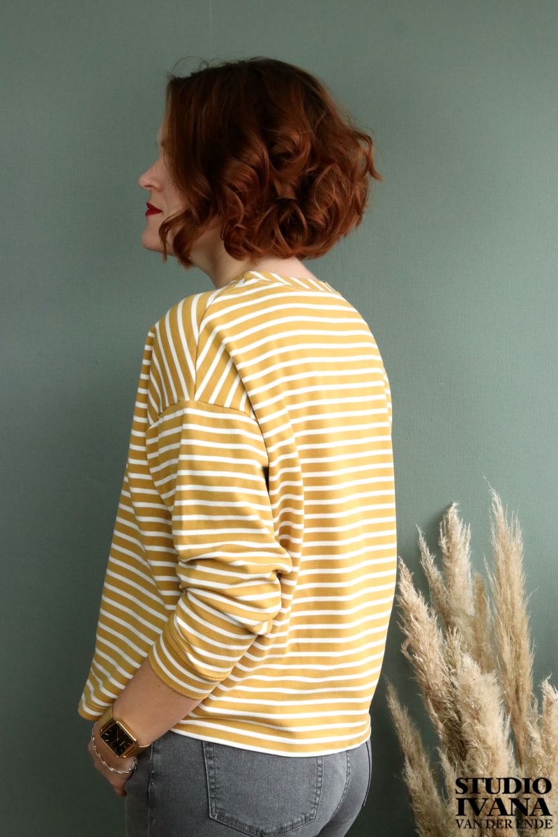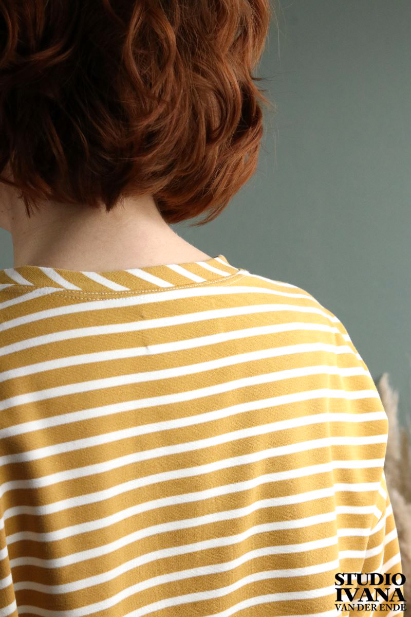 Een fijne, basic en wijd truitje in een frisse gele kleur! Streepjes zijn tijdloos en dat maakt deze tricot trui ook zo leuk.