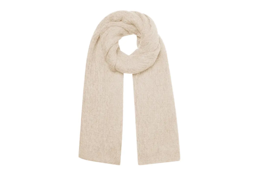 Deze basic sjaal in het zand heeft een zachte structuur en is 190 x 50 cm groot.