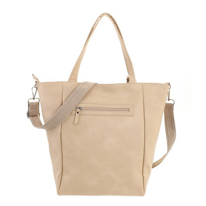 Zand shopper Maud is een ruime en overzichtelijke tas voor een werkdag of een dagje uit! De grote schoudertas sluit aan de bovenkant met een ritssluiting en binnenin heeft de tas een voering met diverse opbergmogelijkheden. Aan de achterzijde van de tas vind je nog een vakje met rits.