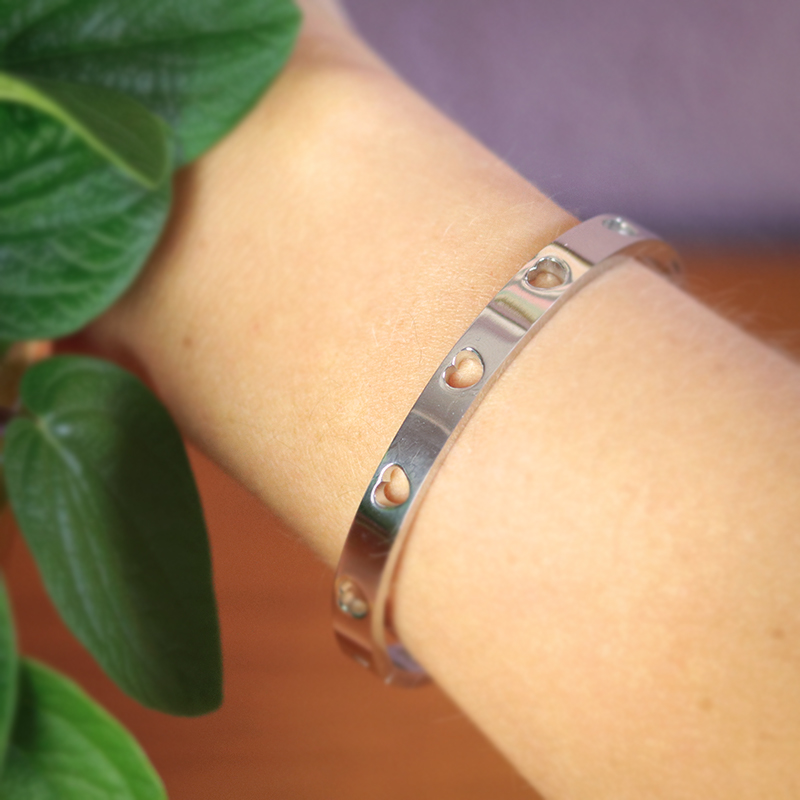 Daarmee gaat de armband soepel open en dicht. De vormen zijn zichtbaar aan beide kanten.