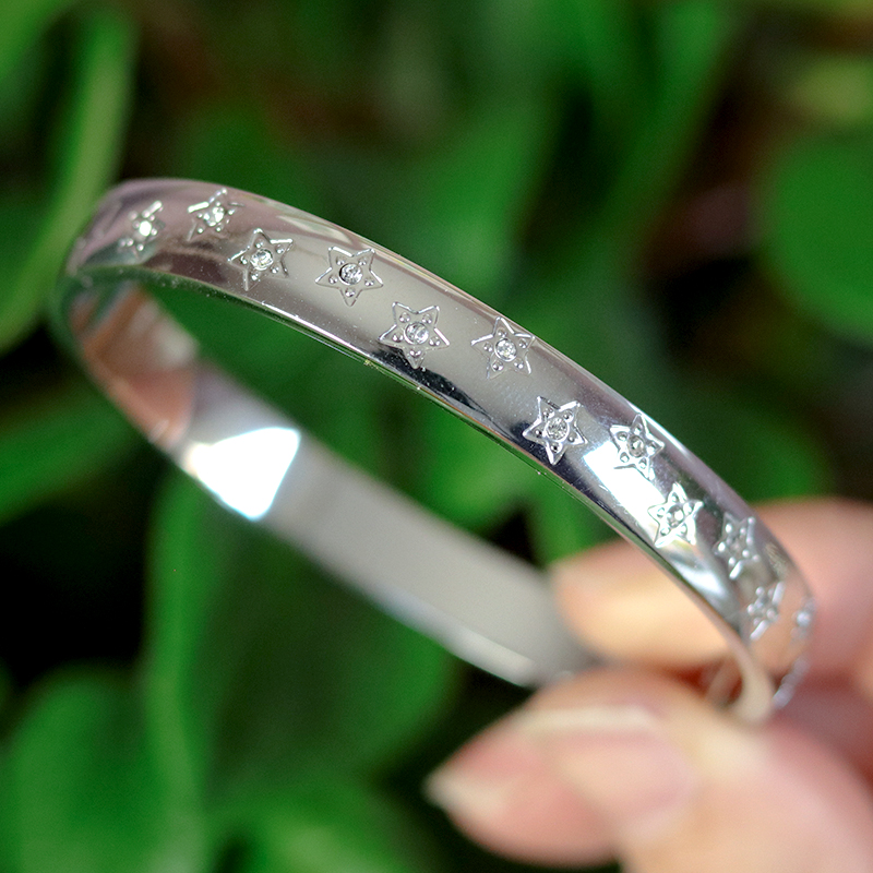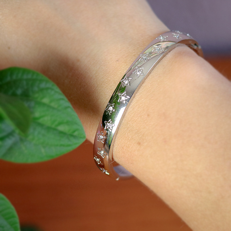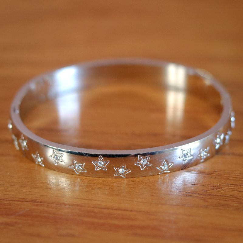 Daarmee gaat de armband soepel open en dicht. De sterren zijn zichtbaar aan één zijde. Aan de andere kant is de armband glad.