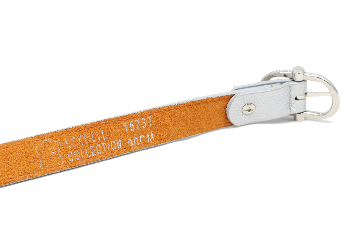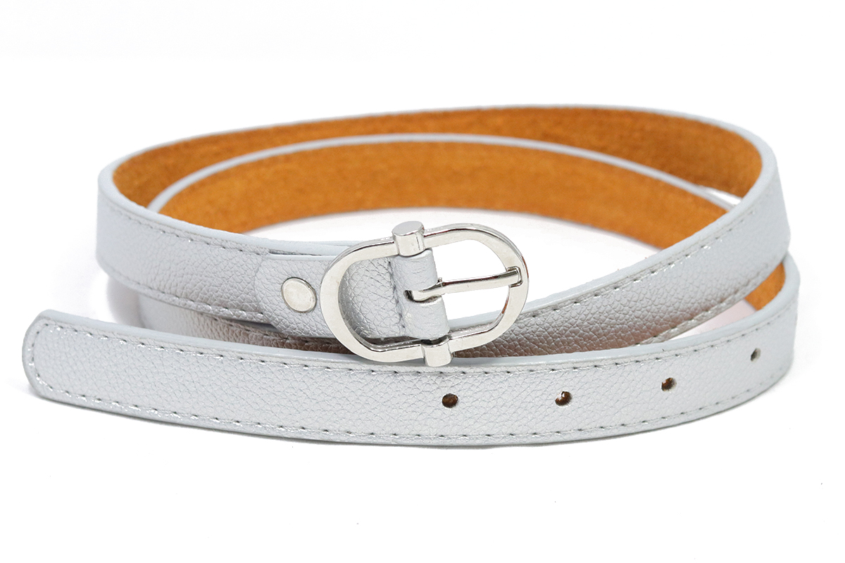 Zilveren smalle riem met gesp. Een mooie basic riem van stevig leder en een metalen gesp. 2 cm breed en verkrijgbaar in diverse maten. De gaatjes zitten op 2,5 cm van elkaar.